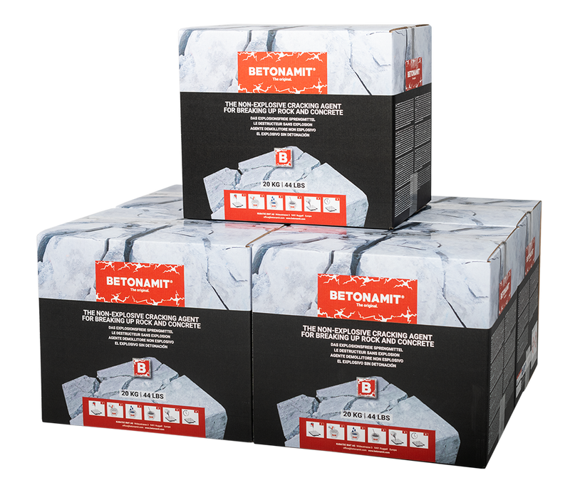 BETONAMIT® används över hela världen av entreprenörer, bergsprängare och byggföretag som kräver resultat, precision och säkerhet. Perfekt för spräckning av sten, betongfundament, murar, block eller berg i trånga områden där traditionell sprängning inte är möjlig.
